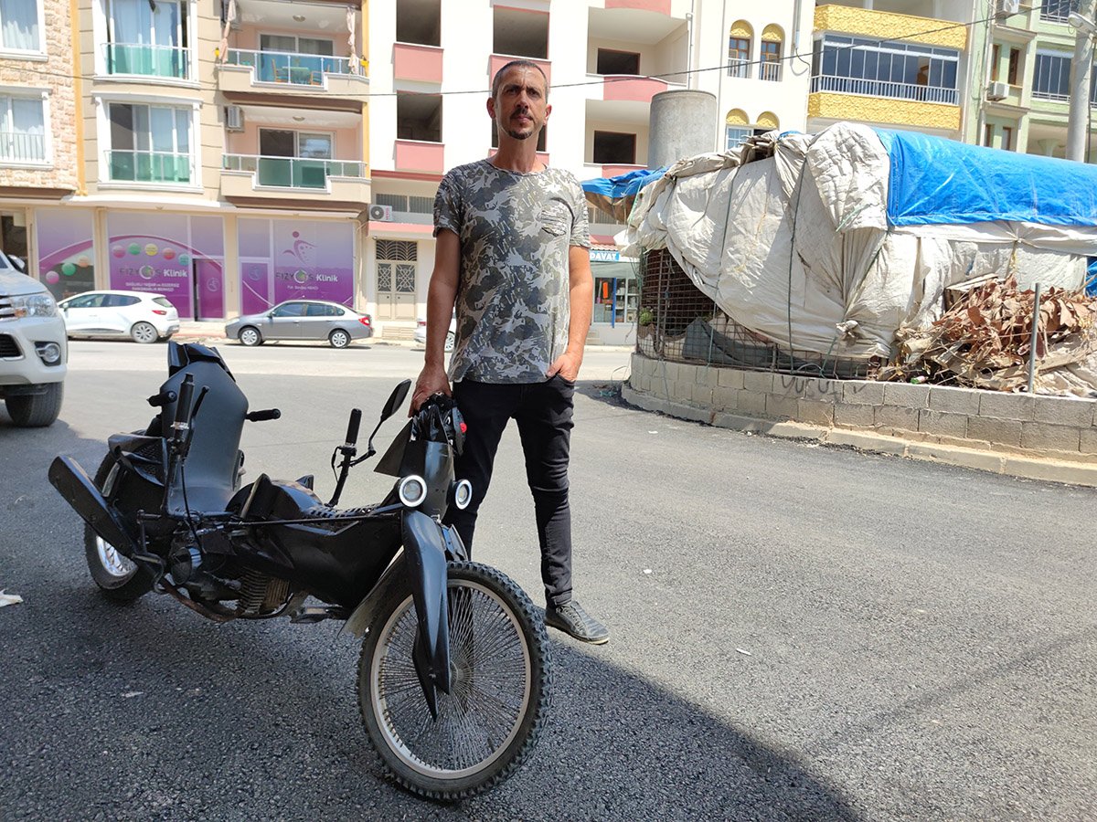 “Öncelikle pandemi dolasıyla bu işe gaz vermeye başladık. Motosikleti yaptıktan sonra sürekli değişim içerisinde beğenmediğim noktaları değiştiriyorum, beğendiğim yerler de kalıyor. Bu işi yaparken çok zorlandım. Çünkü parçaları olmayan bir şeyi üretiyorsun. Buradaki esnaf arkadaşların bazılarının maalesef desteğini çok alamadık, çoğu kişi uğraşmak istemedi. Uğraşan arkadaşlara da çok teşekkür ediyorum. Bazı parçaları kendim yapmaya çalıştım. Bazılarını da esnaf arkadaşlara tarif ederek yapmaya çalıştık ve o şekilde ilerledim. Ön tarafı bisiklet olarak arka tarafı da benzin olarak çevirdik ve farklı bir tasarım haline geldi. Dünyanın tek joystick kollu motosikleti bu. Aslında benzin bitince bisiklet olarak kullanmıyoruz. Ama görüntü olarak bisikleti andırdığı için güzel bir görüntüsü olduğunu düşünüyorum. İnsanların kendi hayallerinden vazgeçmemesi gerekiyor. Bu aracı tasarlarken çok fazla zorluklarla karşılaştım. Ama durmadan yapboz devam ederek bu şekli aldı. Sadece bu işte değil hayat içinde mücadele etmek gerekiyor ve ideallerimizden vazgeçmemeliyiz.”