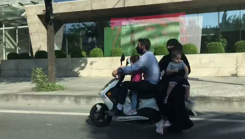 Ailenin çocuklarını kucaklarına alarak motosiklet üzerinde hiçbir güvenlik önlemi almadan seyahat etmeleri görenleri hayrete düşürdü.